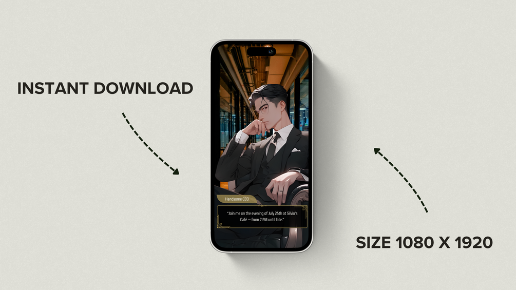 This Otome Game inspired digital invitation is perfect for birthday parties or fun events. This unique Canva template — with its playful design and dark, charming CEO style — will delight your guests as if they’ve just entered an otome game where every choice matters!